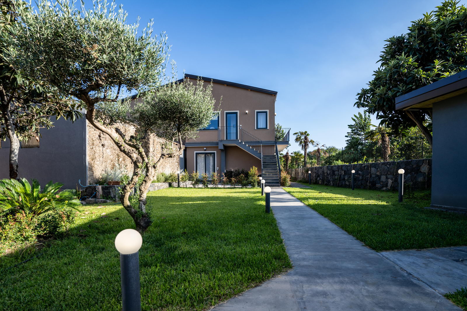 Embraced by the vibrant hues of citrus and orange groves, palm trees, and flourishing vegetation, each individual unit, common areas, and the poolside exude a serene and quite ambiance enjoing enchanting views of the local landscapes and the iconic silhouette of Mount Etna.